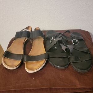 Hey everyone! I've got 14 pairs of various women's shoes, boots, sandals, and other footwear! None are any sort of name brand, all are in fair to good condition, besides needing to be cleaned up and a black scuff on the brown boots. I'm not planning to break it up, feel free to make an offer!