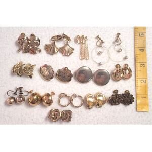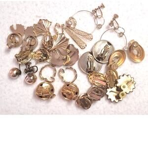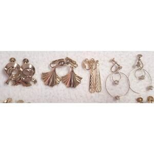 14 Pc Vtg Clip On Screw Back Earrings 2 Silvertone Rest Goldtone Button Dangle Hoops. Some have minor scratches or other minor wear some are like new.