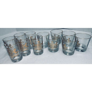 6 6-oz. Rocks and 6 4-oz. smaller straight sided glasses. Coat of arms, word PENNSYLVANIA, and rim around top is gold gilt