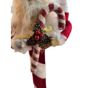 14" Santa Claus Candy Cane Ornament Glitter Details & Bell Vintage Realistic Fac