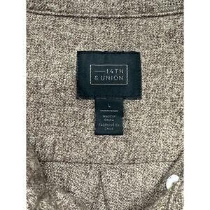 Elevate your wardrobe with this stylish 14 & Union button-down shirt! This men's size large shirt features a tan trim fit and is made from 100% cotton for ultimate comfort. The long sleeves make it perfect for any occasion.
