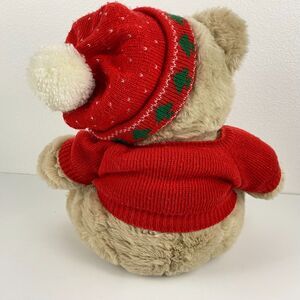 14" Vintage Tan CHRISTMAS TEDDY BEAR Stuffed Animal Plush Brown Windsor Toys Hat