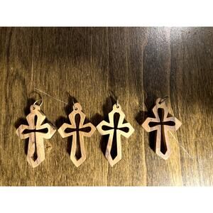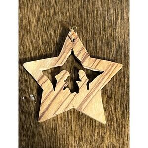 14 Wooden Handmade Ornaments Christmas Trees Cross Bell Star Nativity Scene