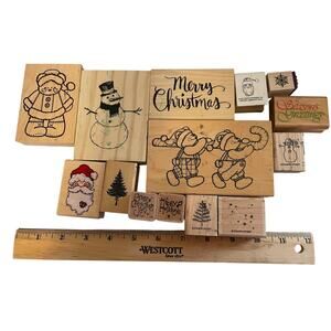 14 Wooden Mounted Rubber Stamps of Various Christmas Characters