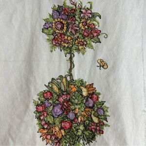 14” X 37 “ Topiary Flowers & Fruits Crossstitched Unframed