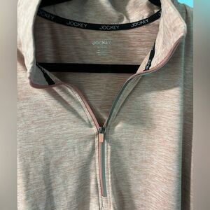 Nwot, excellent condition. Fitted, 1/4 zip sweater, size XL, light pink heathered pullover. Thumbholes in the cuffs.