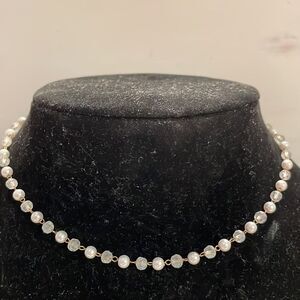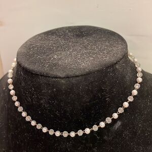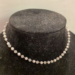14” gold tone 50 faceted translucent & white pearl-like beaded necklace
