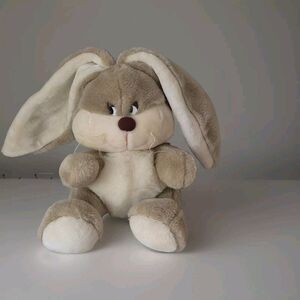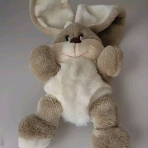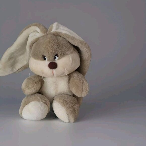 14" vintage Korea Yangjee GRAY TAN WHITE BUNNY RABBIT plush stuffed