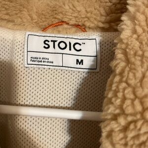 Brand new, no tags. Never worn. Size medium. Half-zip, brown and tan. Also has smaller pocket on front. Really cute! Purchased at a boutique.
