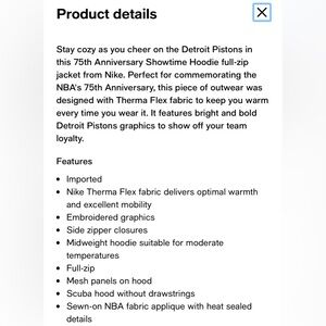 $140 XL-3XLT Nike Detroit Pistons 75th Anniversary NBA Showtime Hooded Jacket