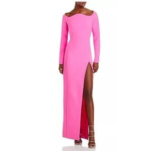 $1400 Monot Off Shoulder Fuchsia Pink Long Sleeve Maxi Dress Sz M