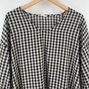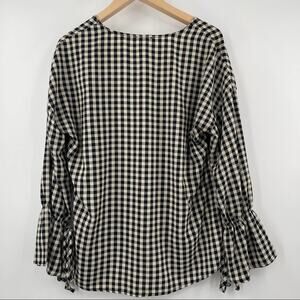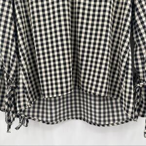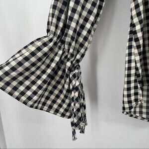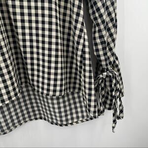 143 STORY by LINEUP Blouse Buffalo Check Ruffle with Ties Sleeves Black & White SZ Small