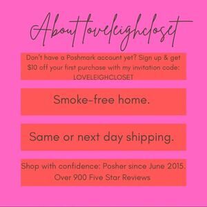 ▪️About loveleighcloset: Smoke-free home. Same or next day shipping. Shop with confidence: Posher since June 2015. Over 900 Five Star Reviews