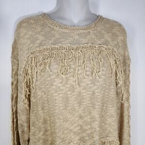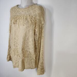 143 Story By Lineup Sweater Womens Large Fringe Tasseled Open Knit Boho Pullover