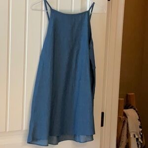 143 Story by Line Up dark chambray top with ruffled front and spaghetti straps. 28” length.