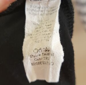3/4 sleeve tee in a longer length. Body & part of sleeves are a gray & white ribbed material. Solid black shoulders/upper arms and lower body.