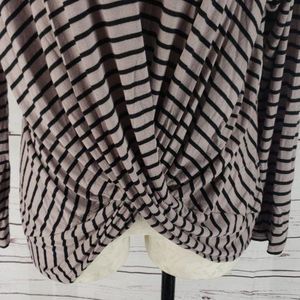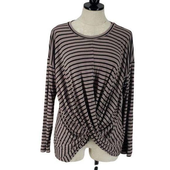 143 Story Taupe and Black Stripe Long Sleeve Blouse