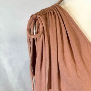 Very soft and stretchy oversized top could easily fit up to a large. Vneck and Ruched tie sleeves. Euc
