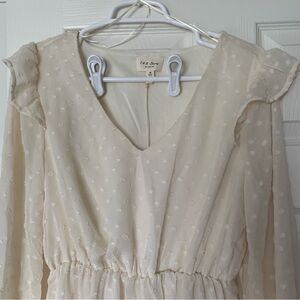 143 Story by Line Up NWT Cream Dress Mini Size M V-Neck Sheer Sleeves, Fully Lined Body, Ruffles Just Flowy & Beautiful!! 100% Polyester Lining & Shell