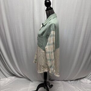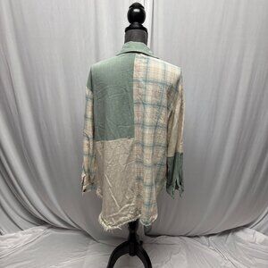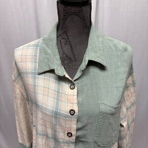 143 Story by Line Up Plaid Solid Colorblock Button-Up Shirt Womens Size Large
