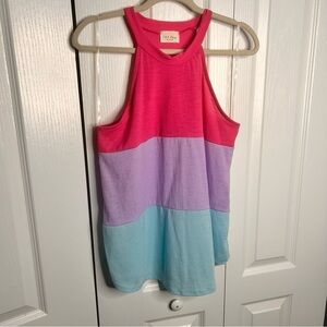 143 Story by Line Up Women’s Color Block Halter Tank Top Medium Blue Pink Purple