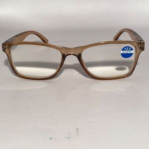 1435 Helen 3.5 Reading Glasses Thin Rectanle Bluelight Filter Taupe Frames NWT