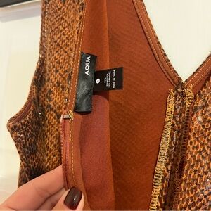 #144 AQUA BROWN SNAKESKIN BELTED SLEEVELESS DRESS SMALL