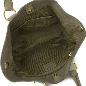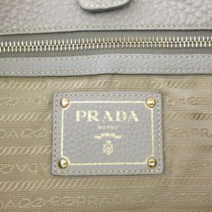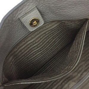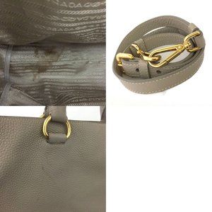 147304E V Prada Shoulder Bag Logo Plate Beige Leather 2way