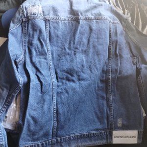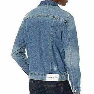 $148 Calvin Klein Men's Denim Trucker Jacket, Ed Blue Destruct, Large