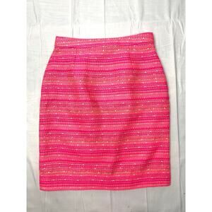 $148 Lilly Pulitzer Pink Metallic Tweed Boucle Barbie Core Pencil Skirt Sz 0