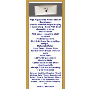 $149 AQS Modified Cat Eye Sunglasses AQUASWISS Mirror Blue Lens Made Italy 🇮🇹