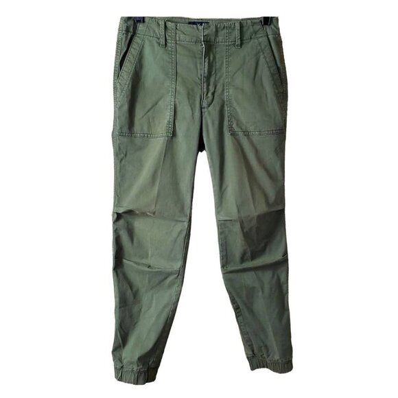 American Eagle Army Green Stretch Cuffed Utility Jeans Womens Size US 0