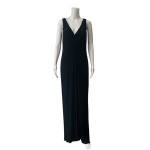 $1490 Akris Bergdorf Goodman Black Gathered Ruched Long Dress size 10