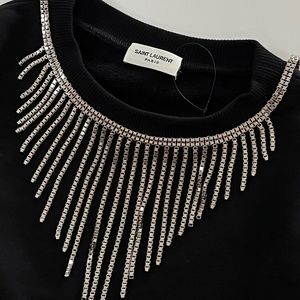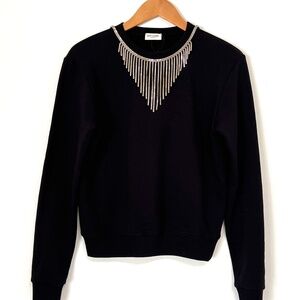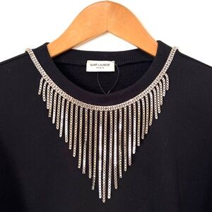 $1495 Saint Laurent Cotton Jersey Top with Necklace embellishment Black