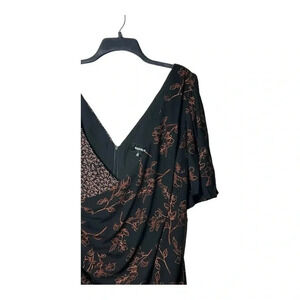 DETAILS: FAUX WRAP; SHORT SLEEVE; FLUTTER SLEEVES; V NECKLINE; FULLY LINED; ZIPPER CLOSURE IN BACK; LIGHTWEIGHT