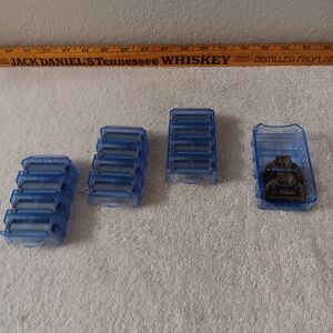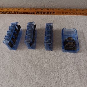 Set of blue razor blade refills. Includes multiple cartridges.