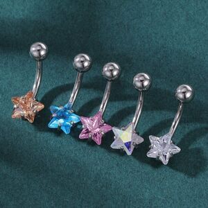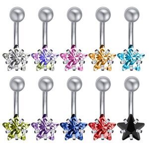 14G 316L Star Cubic Zirconia Barbell Belly Button Navel Rings - Set of 10