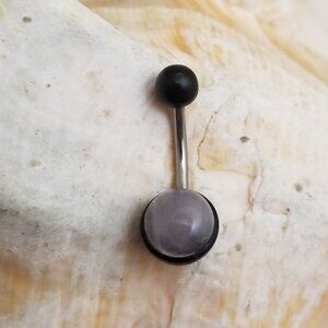 14G Arang wood balls and rose quartz disc insert Surgical Steel belly ring