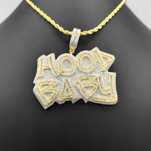 New Icy Supreme Quality 14K Bi-Color Gold Finish Hood Baby Pendant over Brass Dipped In Gold 5xTimes To Include a Free 14K Rose Gold Finish 24inch x 3mm Rope Chain For Men.