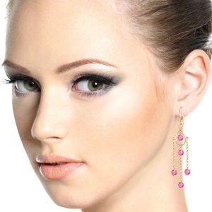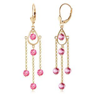 14K. GOLD CHANDELIERS EARRING WITH PINK TOPAZ (Yellow Gold)