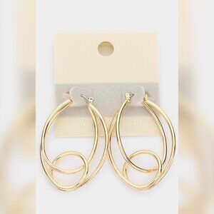 14K GOLD DOUBLE LAYER OVAL HOOP EARRINGS