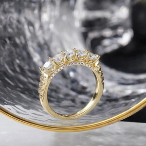 🔥14K GOLD PRONG ETERNITY ROUND CUT MOISSANITE 5 STONE ENGAGEMENT RING, K750
