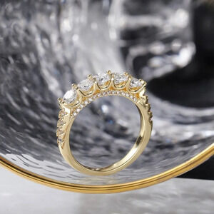 🌸14K GOLD PRONG ROUND CUT MOISSANITE 5 STONE ENGAGEMENT RING, K750