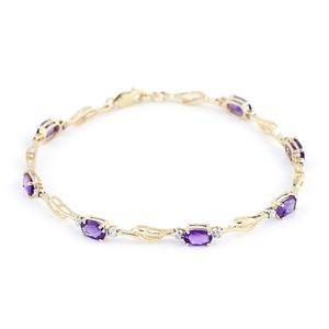 An elegant style of 14K Gold Tennis Bracelet having 7 oval-shaped natural Amethyst, together with 2 round cut natural Diamonds.