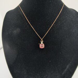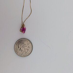 This elegant 14K gold necklace features a stunning lab-created pink sapphire pendant, exuding sophistication and charm. Lightweight and versatile, it adds a touch of vibrant luxury to your attire. A timeless accessory that embodies both beauty and quality, making it a must-have for jewelry enthusiasts.
