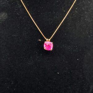 • 8 mm Lab-created pink sapphire pendant, cushion-cut