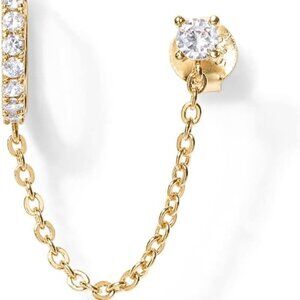PREMIUM QUALITY: Crafted with sterling silver posts and finished with 14K yellow gold plating, these lightweight earrings with chain feature premium AAAAA cubic zirconia for lasting sparkle. The long-lasting finish is hypoallergenic, nickel-free, lead-free, and cadmium-free for sensitive ears, offering comfortable everyday wear. They re so lightweight you ll barely feel them on.
