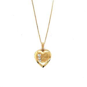 Real 14k Yellow Gold Box Chain with 14K Gold Filled I Love You Locket Pendant.