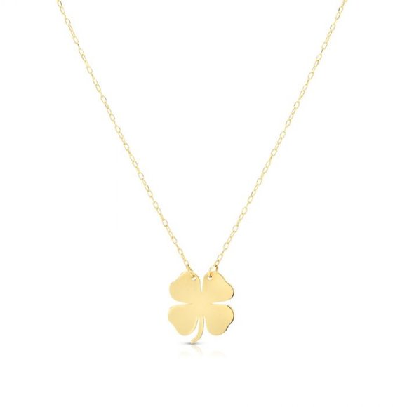 14K Yellow Gold 18" Polished Clover Necklace with Spring Ring Clasp. Includes 2" extender starting at 16."