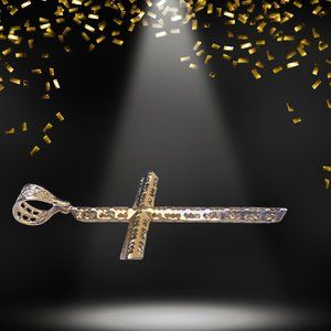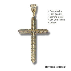 🌟 Elevate Your Style with Our Exquisite 14K Gold Cross Pendant over Sterling Silver 🌟 Large Cross.